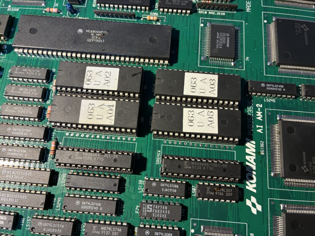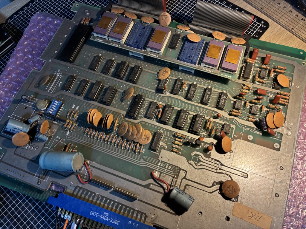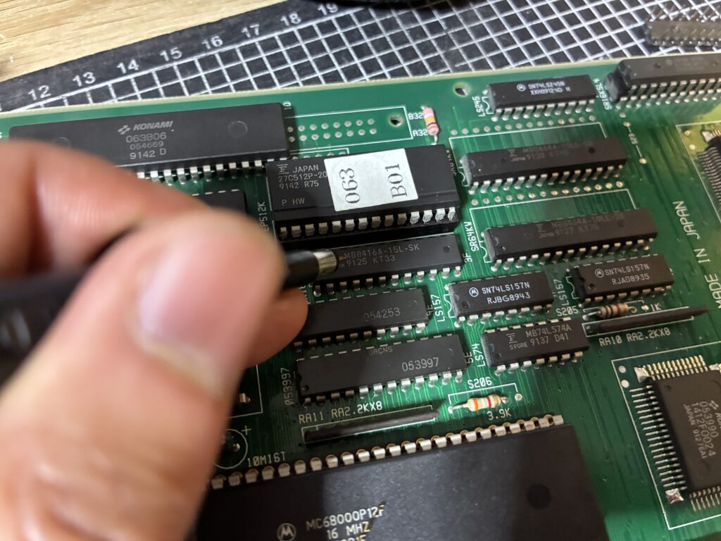 ソケットを交換してサブボードを取り付けましたが、今度はROMエラーが出ました。やっぱりサブボードのままで運用するのは良くないのでしょう。たまにプログラムROM5個分のソケットが基板に付いているコピー基板を見ますが、あっちの方がいいですね。