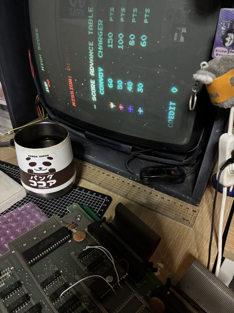 Z80そのものが壊れている可能性もあるので、交換してみたところ先に進みました。『ギャラクシアン』にもチェックROMがあったので活用していきます。