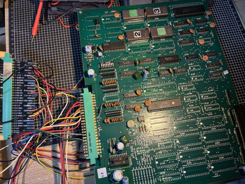 速度の速いSRAMに交換したところキャラ化けが解消されました。こんなの分かるかよ…と思ったら、以前見た『トロピカルエンジェル』の修理も最後はこれでした。何の経験も生きてない。