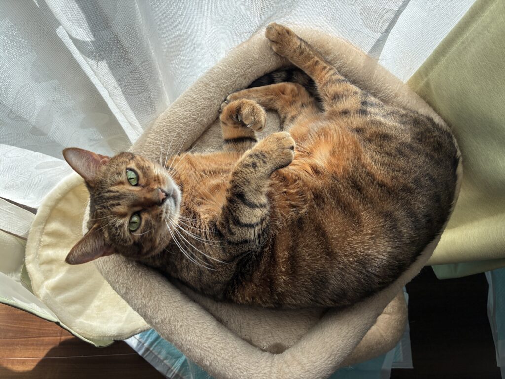 投稿日: 2025年6月30日2025年12月5日 投稿者: Cat Hui Tradingメスネコのさくらちゃん その4老いてなおネコ真っ盛り、ベンガルメスネコのさくらちゃん写真集その4。その1 創業~2023年6月20日その2 2023年6月21日~2024年6月20日その3 2024年6月21日~2025年6月20日