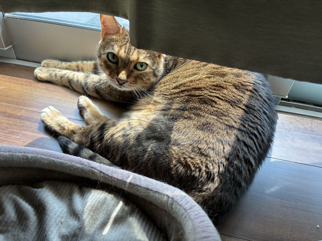 投稿日: 2025年6月30日2026年4月21日 投稿者: Cat Hui Tradingメスネコのさくらちゃん その4老いてなおネコ真っ盛り、ベンガルメスネコのさくらちゃん写真集その4。その1 創業~2023年6月20日その2 2023年6月21日~2024年6月20日その3 2024年6月21日~2025年6月20日