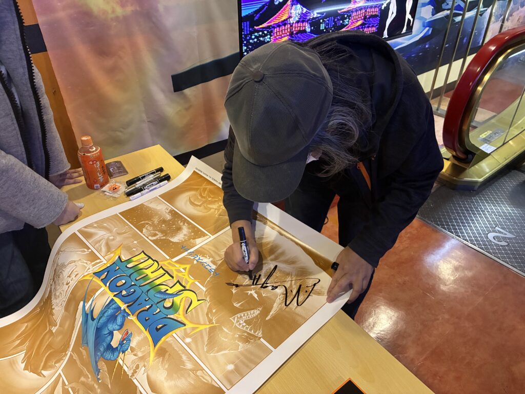 細江さんのサインが入った『ドラゴンスピリット』の復刻B1ポスター(協力:ナツゲーミュージアム)は2Fで飾られていました。ご来店の際には探してみてください。ゲームも実際に見てきた2026年1月31日現在は稼働中です。